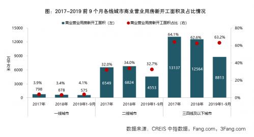 详细来讲,1~9 月,三四线及以下都会贸易停业用房开辟投资额、新完工面积和发卖面积别离同比降落 5.2%、4.2%、11.6%。从占比来看,三四线及以下都会仍然是贸易地产企业投资和开辟的重点地域。1-9 月,三四线及以下都会贸易停业用房开辟投资额、新完工面积、发卖面积占天下贸易停业用房对应项的比重别离为 54.0%、63.2%、65.4%。